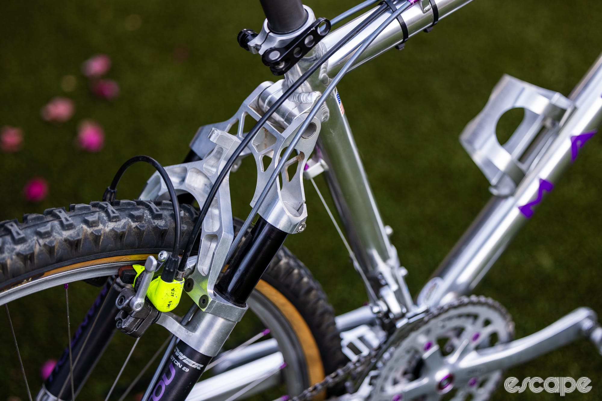 I first met him at a race series we have during the summer months, as motivation to get out of the house and ride on scorchingly hot days. Scooby always stood out, racing on vintage equipment that contrasted with the modern bikes and components others used. And most weeks, he was on a different bike, showing off the depth of his collection – from a full-suspension Jürgen Beneke World Cup DH championship-replica Manitou to a quirky Bianchi Cervino he converted to a drop-bar MTB with period-correct front suspension. Each one features painstaking attention to detail.