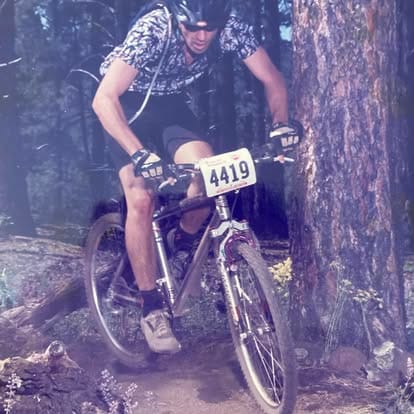He started racing in 1997, with the first event being the Cactus Cup at WestWorld in Scottsdale. Around that time, he befriended a fellow rider named Craig, who sold him his first real mountain bike frame – a Manitou hardtail. The pair "became riding buddies," according to Scooby, and "every weekend we would pick a ride from the Cosmic Rays trail bible and go out; this was way before cell phones."