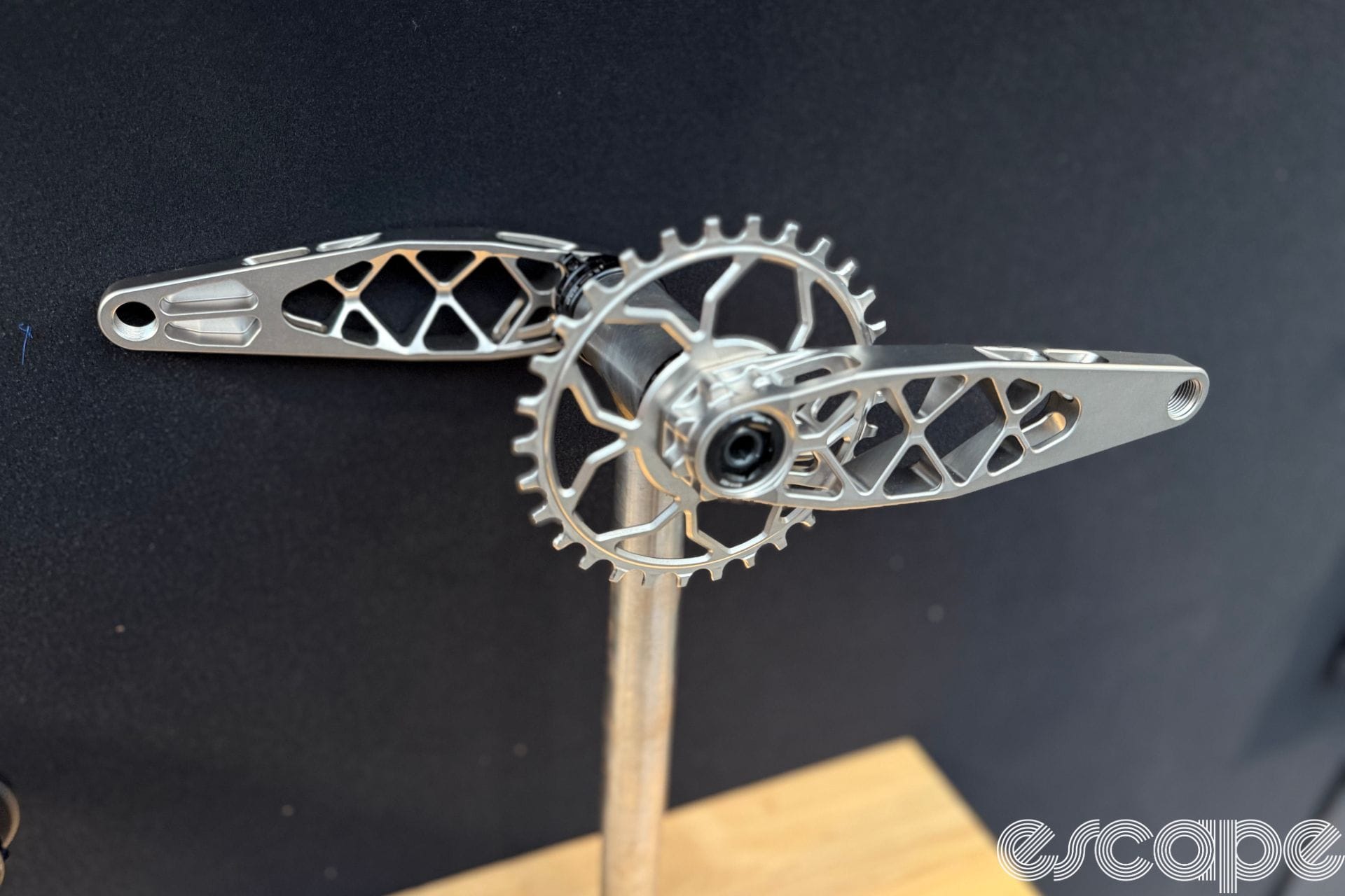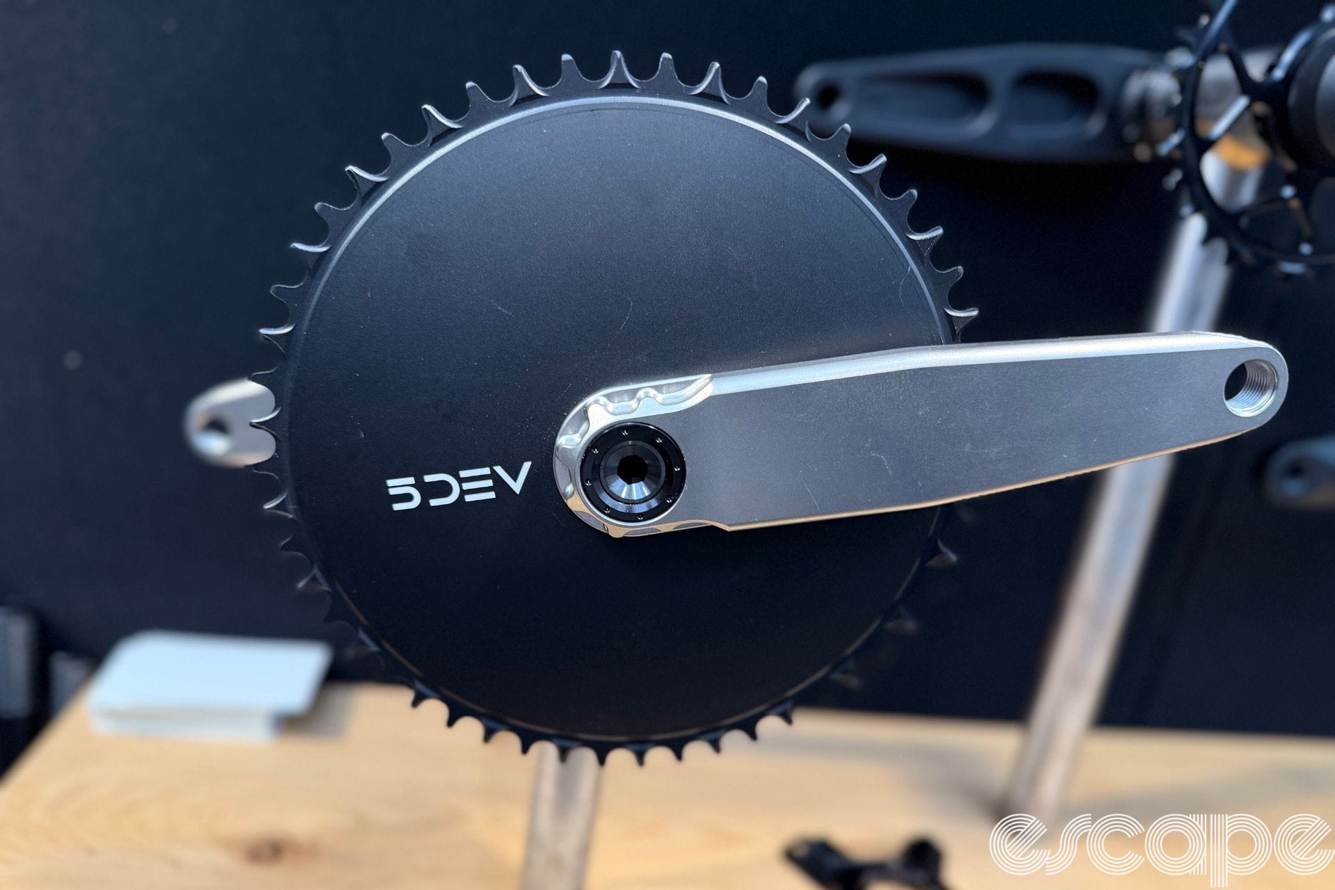 5Dev had its EvoSid skeletal titanium mountain bike cranks and diamond-coated titanium road cranks with aero 1x chainring. The diamond coating used on the brand's cranks is claimed to be incredibly hard-wearing, removing the potential for heel rub scuffing your cranks. At US$1,200 the brand's diamond-coated cranks come with a hefty price tag.