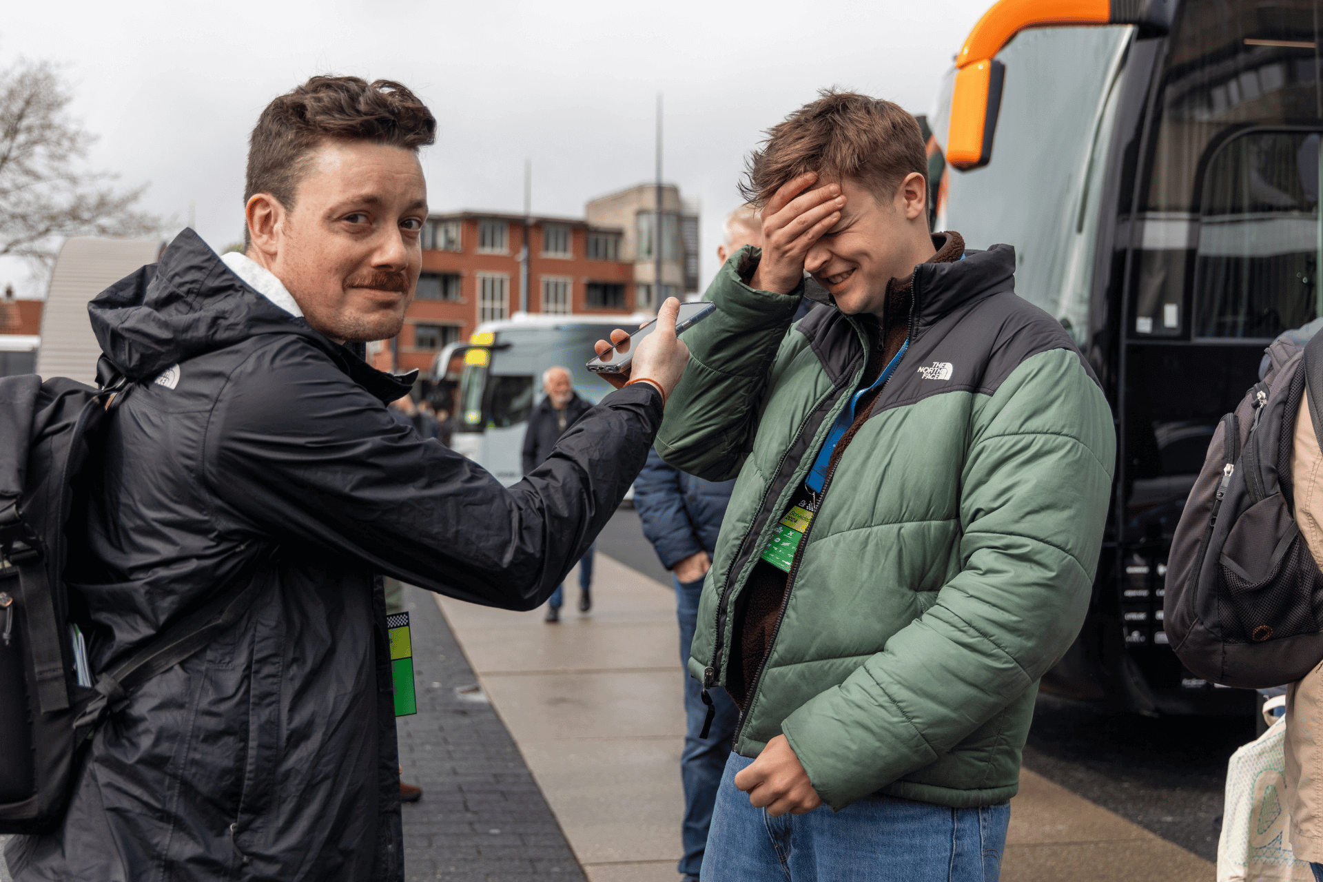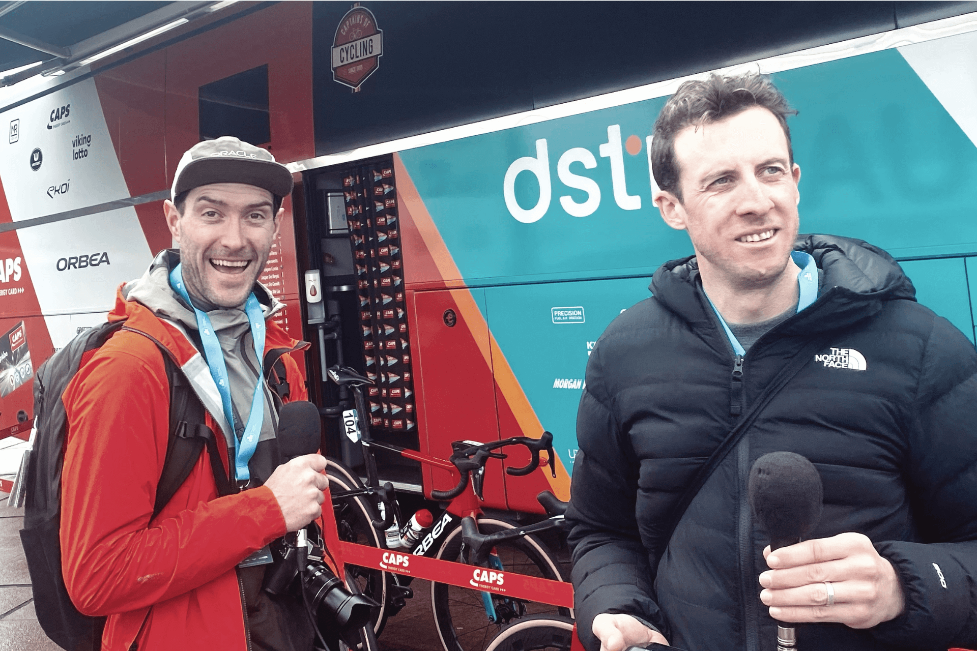 The bus parked about 1 km away from the Roubaix velodrome so that we had the space to unload bikes and get ready. It was a balmy 15°C and would reach the low 20s by early afternoon. Perfect cobblin' weather. Photo: Pete BryanCool, calm, and collected: Dean Murphey (left) and Dwayne Ziegler (right) had their gamefaces on for the start of the Roubaix Sportif. Photo: Jared McClintock🤤 Delicious and nutritious snacks were available at designated stops along the way. Photo: Khue CaiNo doubt the good folks at Shimano had their hands full all day. Photo: Khue CaiThe exit from secteur 8 (Templeuve). Mud at the entrance and exit made these 2-star cobbles tricky to navigate. Photo: Khue CaiTodd Markelz opted to go glove-free for the 145 km Roubaix Sportif.Claire Law, also of the 145 km group, opted to use gloves and seemed pretty happy about crossing the finish line.After collecting our finisher's medallions and a quick costume change ...... we secured seats at the 50m post and eagerly awaited the finale.Best seats in the house to Watch the Femmes. Photos: Andy van BergenWatching Lotte Kopecky launch around the outside for the win is my personal Top One Cycling Memory Ever. Photo: Kit Nicholson (who spotted us from her telly)