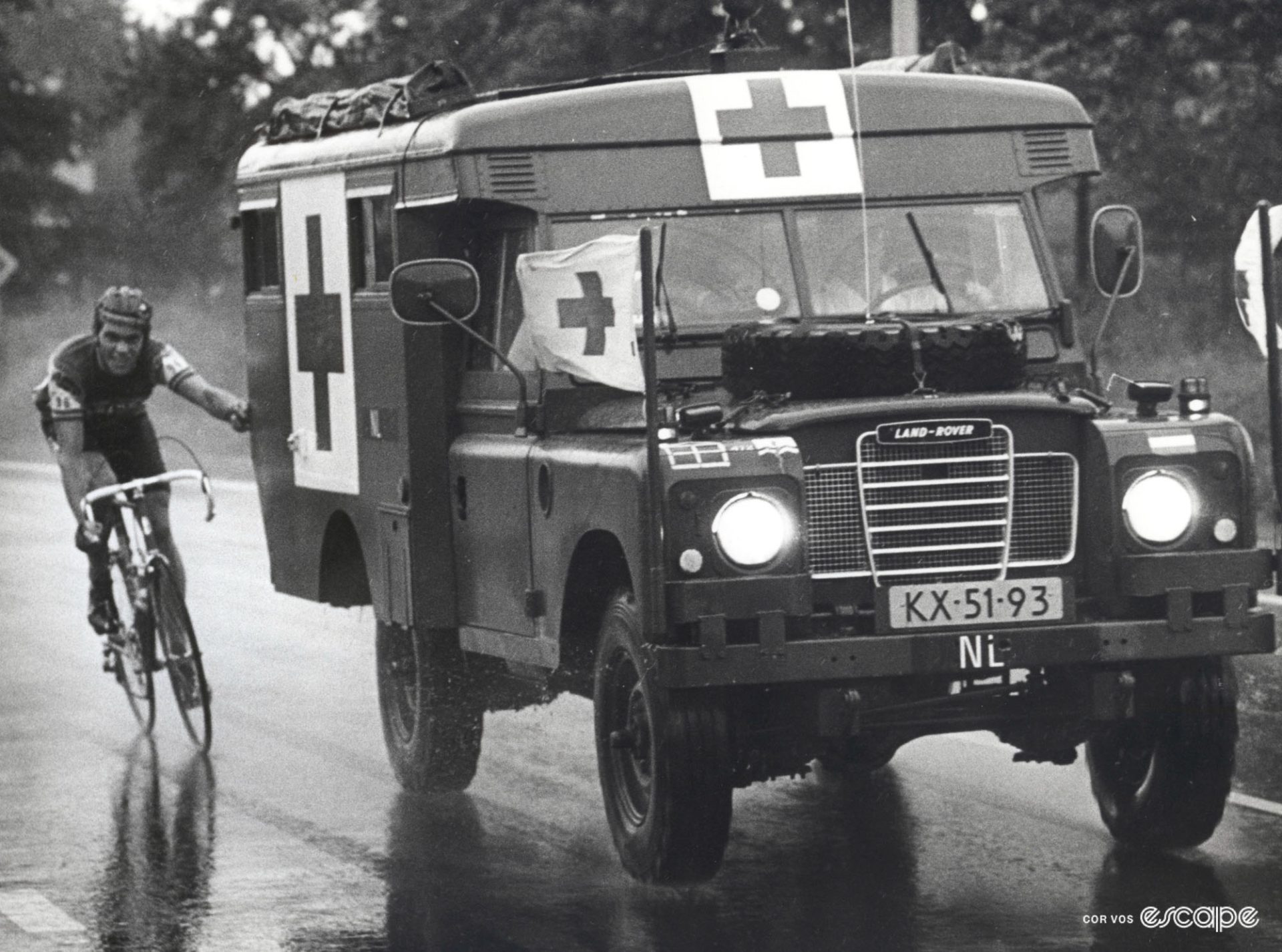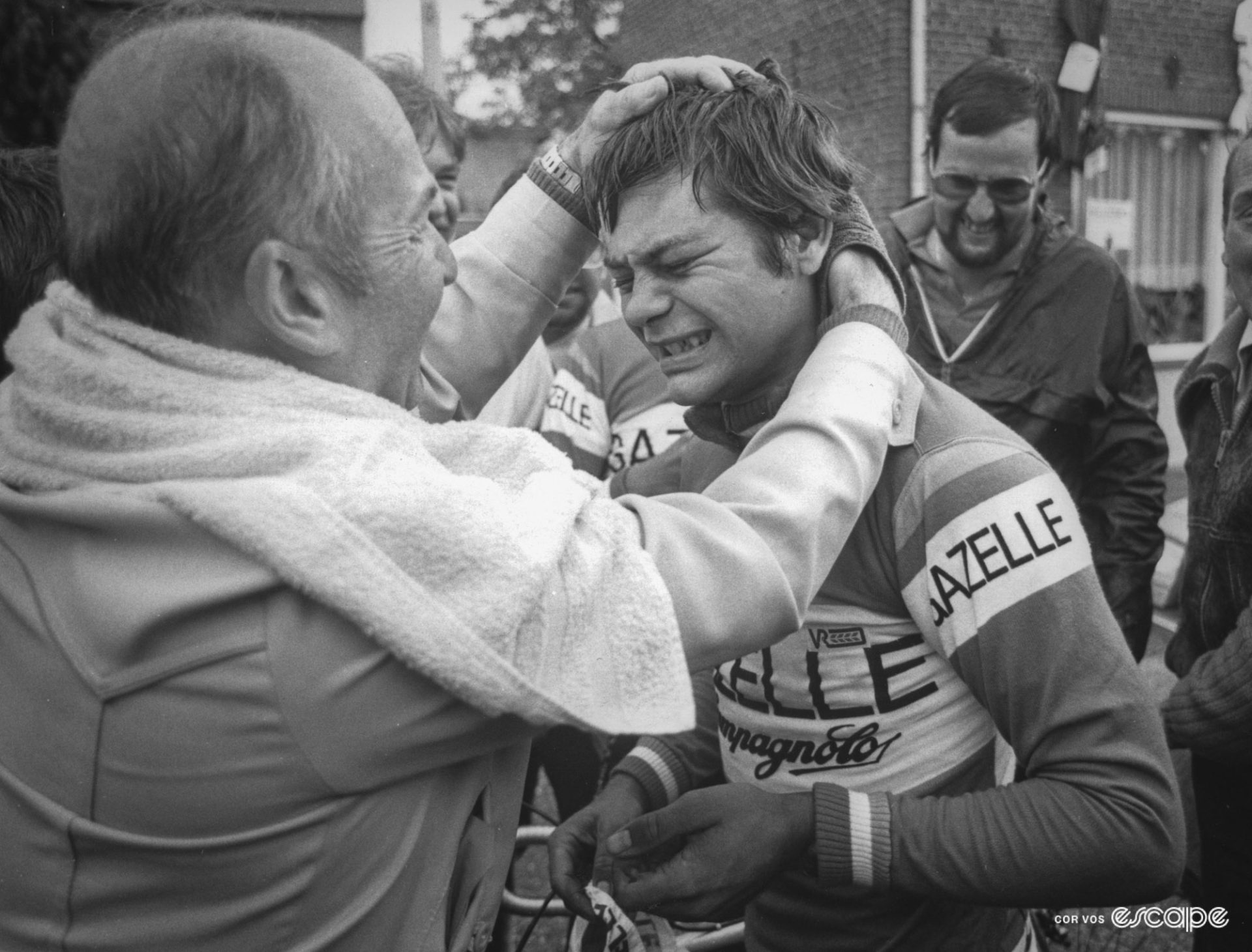 Every so often, the photographer Cor Vos dumps a vast collection of vintage photos in a folder. The pictures themselves are seldom anything special – no Gruber-esque vibes, no Kramon-esque framing – but they’re evocative as hell, mostly because of the glimpse they provide of an era long before most of our journeys in cycling began. Accompanying these black and white snapshots is sparse metadata, usually little more than a rider name and sometimes not even that.