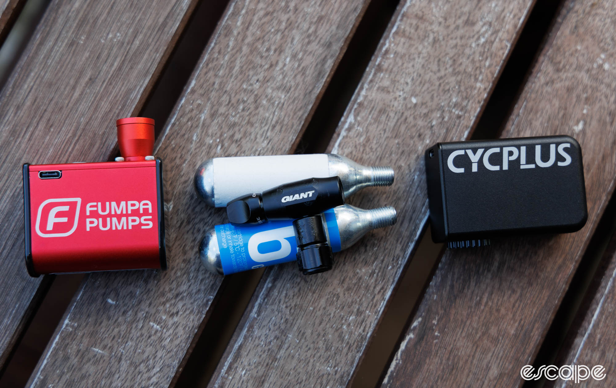 Meanwhile you may be wondering how some of the mini inflators compare to a decent hand pump in case of road/trail-side repair. Quite simply, with an electric inflator you won’t end up exhausted or frustrated (unless you get enough flats to flatten the battery). And compared to CO2, it won't be as fast, but is arguably less wasteful and lower stress in that you don’t need to get it right on the first go.