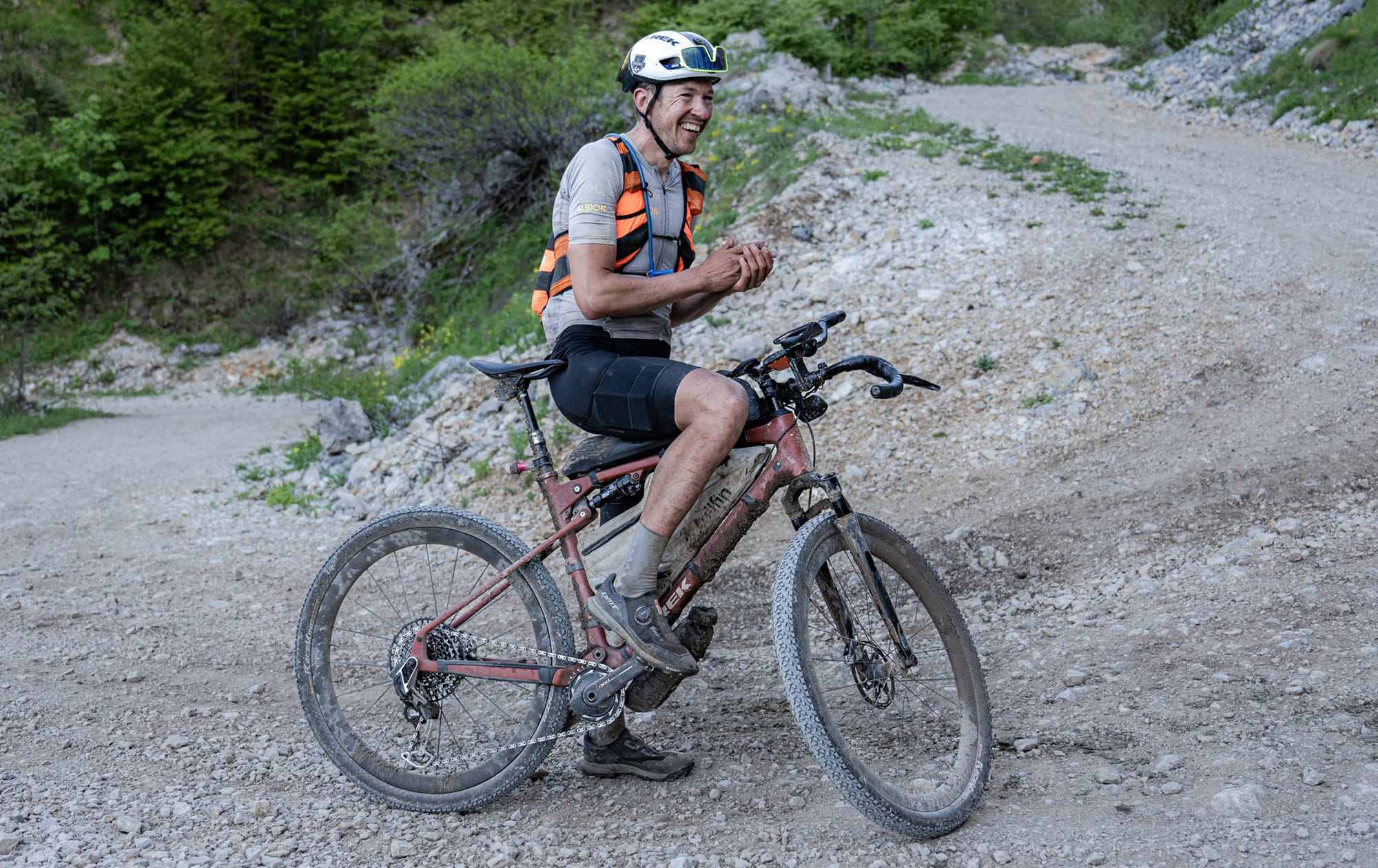 While the physical achievement of riding some 1,400 km with 27,000 meters of elevation, on 82% off-road surfaces, in a little over four days is unbelievably impressive, it’s that brown full-suspension bicycle with a Trek logo on the downtube that truly grabbed my attention (sorry, I can’t help who I am).