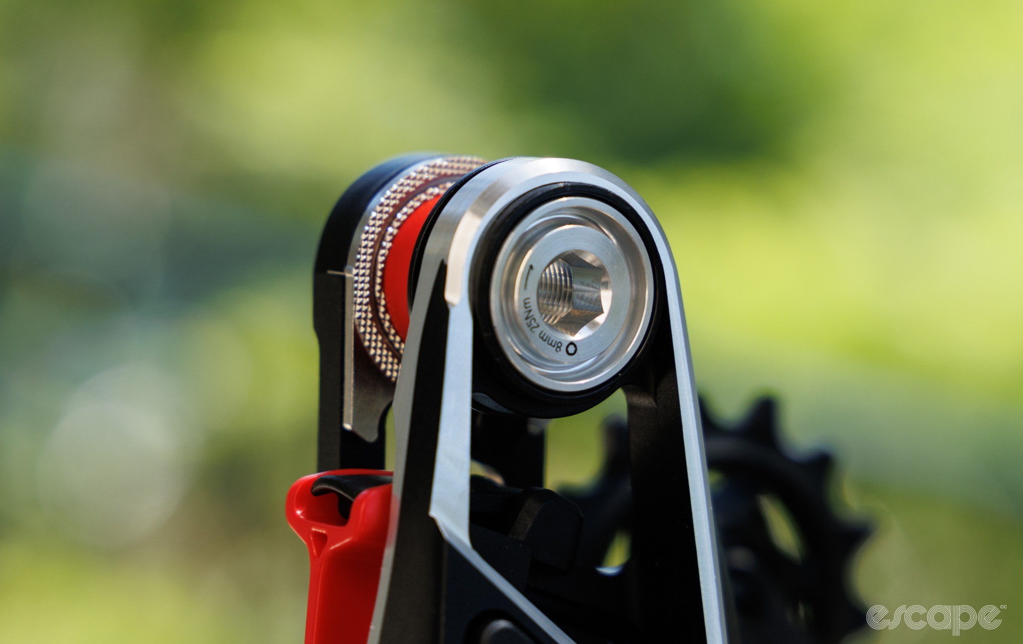 The derailleur even has a bit of tilt built into it (not too dissimilar to the Yaw feature seen in SRAM’s front derailleurs) to better line up the chain with the chainring up front; it’s enough of an angle that the derailleur can look bent to riders behind, but it’s intentional. Bigger picture, all of this means the setup of this new derailleur is vastly simplified and unlike anything before it.